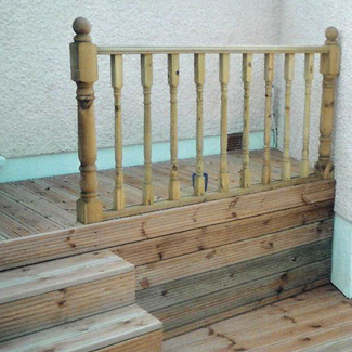 a stepped decking area with wooden fence makes a feature of this small back garden